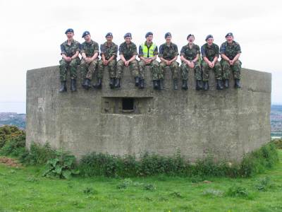 Sunday, the day of the cadet march started out very warm, the squadron had been divided into two teams, the blue team included cadets who were tackling route marching for the first time while the red team consisted of those feeling a little more energetic with the goal of completing the 25 mile route. Setting off first the reds were followed a short time later by the blue team. All three routes start and finish on the same sections of road but split at various points. With both teams in high spirits good progress was reported, the routes headed inland from Dibgate passing around the back of the Eurotunnel terminal and uphill towards the WW2 airfield at Hawkinge. Shortly afterwards the red and blue routes divide with the reds heading yet further inland. Taking in views of the garden of England the teams sang and chanted their way around the network of country lanes. While the blues set course for Caple-Le-Ferne the reds were dealing with their additional 9 miles before rejoined the blue route. At Caple-Le-Ferne blue team returned to the memorial that the squadron had visited the day before for a break where the Red Arrows treated them to a chance flypast. From here the two courses head along the ridge above Folkestone, which afforded some good views across the channel and down the coast to the nuclear power station at Dungeness. On top of the ridge the blue team found some pillboxes dating back to the WW2 and a Royal Observer Corps observation bunker from the Cold War, here AWO Taylor gave an impromptu history lesson explaining the role that ROC played during those dark times. One final checkpoint and a cup of tea gave the teams hope of completing the course which involved descending the hill, passing back past the Eurotunnel terminal and onto the same road that the course had started out on. With one final drive the teams sang their way up the final hill and onto Dibgate camp for the finish. The remainder of Sunday afternoon and evening was spent tending to sore feet, aching muscles and the odd blister at which point Commanding Officer Flt Lt Whittaker's Nijemagen experience proved very useful. After a fantastic evening meal, which was prepared by Mrs Croft of the Civilian Committee, everyone sat down to an evening in the cinema tent to watch the film 633 Sqn.