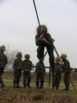 The cadets arrived at the squadron at 0800 hours. After preparing the equipment and themselves for the bridge build that will follow, the cadets departed to the river for their lesson in camouflage and concealment. They were taught the significance of exercises in the field with a lecture delivered by CWO Croft. Following this the cadets were then briefed to advance as one to the allocated bridge area, via an obstacle, which they had to tackle. Once this had been overcome the cadets split into two teams and were set the challenge of building the bridge that they would subsequently have to cross. All the cadets then started building whilst the newer cadets learnt the workings and reasons behind the bridge.