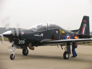 The Shorts Tucano T1 is a single engine turboprop training aircraft with performance similar to a jet aircraft and capable of speeds up to 315 mph.