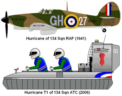 With the RAF naming its Eurofighters as Typhoons to honour a great plane of the past 134 (Bedford) Sqn ATC have followed suit with the hovercraft. While the Hurricane is best known as being involved with the Battle of Britain in September 1940 they also saw service further a field, during World War II 134 Squadron RAF flew Hurricanes against the Luftwaffe on the eastern front in Russia thus maintaining a historical link.