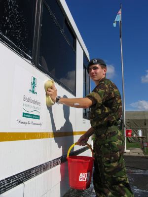Squadron Warrant Officer Taylor said, “As we are located next to the busy A600 road we are lucky in that we pick up a great deal of passing trade and many of our customers supported last years car washing events. The benefits of this activity are significant. We raise funds for our minibus appeal, we advertise the Air cadets to the wider community and our cadets experience practical teamwork.”