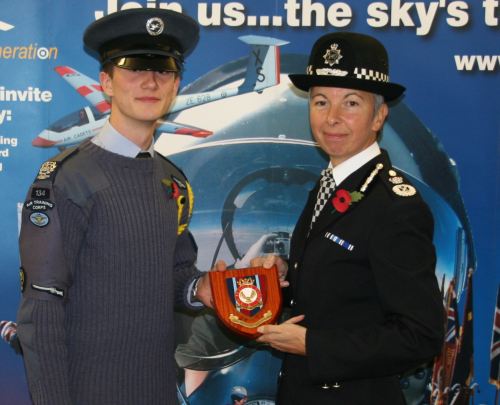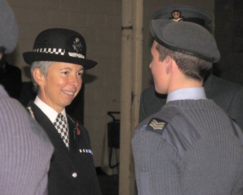 Bedfordshire Police Chief Constable Gillian Parker, QPM, BSc (Hons), MSt (Cantab) dropped in to make enquiries with the cadets of 134 (Bedford) Squadron, to find out what happens on a typical evening.