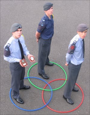 Cadets are taught about the three rings of leadership, the needs of the team, task and individual and how all of these aspects influence achieving an aim or objective. The picture supplied shows Sergeant Denham, Sergeant Every and Corporal Smith standing in a visual representation of the three rings of leadership. |