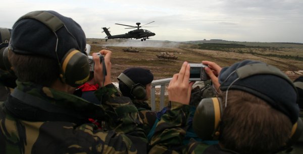 Tracer fire from heavy machine guns, Warrior armoured fighting vehicles and Challenger 2 tanks lit up the afternoon sky as it pounded enemy positions directly in front of ten Air Cadets from 134 (Bedford) Squadron.
