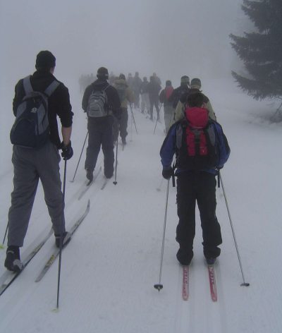 The aim of the week was to learn the techniques needed to gain a recognised Bronze award in Nordic Skiing. On Thursday the whole course took up the challenge to ascend to the top of the Großer Arber mountain. Although this was an extremely arduous task, after many hours hard work all participants where pleased to have successfully completed the ascent.