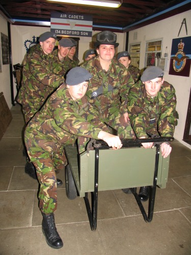 On Monday 7th April, after seven years of service as a cadet at 134 (Bedford) Squadron, Esther was wheeled out of the squadron headquarters into civilian life. Pushed on a trolley by all the NCO team. A tradition which is followed for all Senior NCO's when they retire from the squadron.
