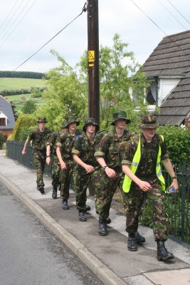 An early rise saw the cadets prepare for the walk that was to follow, and the two teams were soon breakfasted and ready to leave. The red team was headed by FS Sean Denham, 16yrs and the blue team was commanded by WO Taylor. Setting out at 0830 hrs the red team left in high spirits and had a highly successful walk. Though only two of the group had walked the route previously, all six members of the team were successful in completing the 42 KM march, despite blisters and sore feet, in a new record time of just 6 hours and 55 minutes. The blue team, setting out half an hour later were again highly successful in completing the route, aided by various songs and chants on the way round and were back in a very respectable 5 hours and 55 minutes.