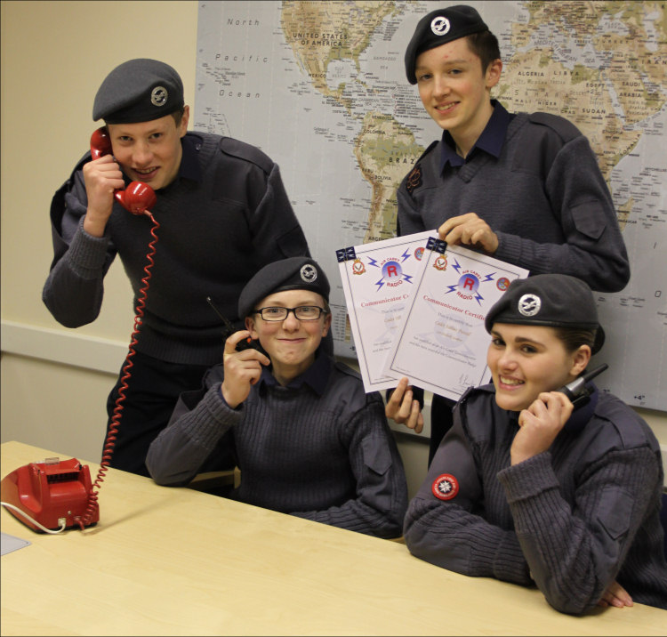 Cadets Lauren Fletcher (14), Marti Foy (18), Levi Jack (14), Will Nicholls (15) and Joshua Purcell (16) gained the prestigious Air Cadet Communicators Badge. The course required completing 6 of 11 available modules, two of which are compulsory. Training commenced over dedicated weekends and cadets are proficient in the use of Private Mobile Radio, Very High Frequency and Ultra High Frequency. History and theoretical studies of the use of Radio and Radar since their conception were also undertaken along with analysing multiple Atlantic and North American Air Traffic Control High Frequency transmissions.