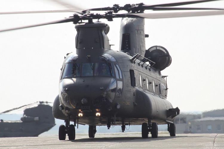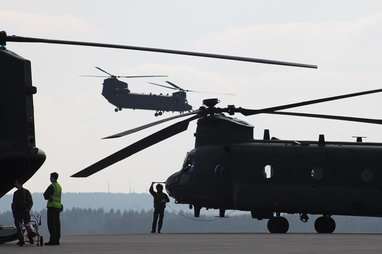 FS Turpin joined the Squadron as they performed under-slung cargo training exercises with their twin rotor Chinook HC4 helicopters. The containers and barrels were collected by the team and dropped off multiple times in the 2-hour exercise. The crew also practiced sharp turns and rapid stops. This allowed Nathan to experience a snapshot of their typical training regime. He was also fortunate enough to witness the setting sun whilst safely anchored on the aircraft’s tail ramp.
